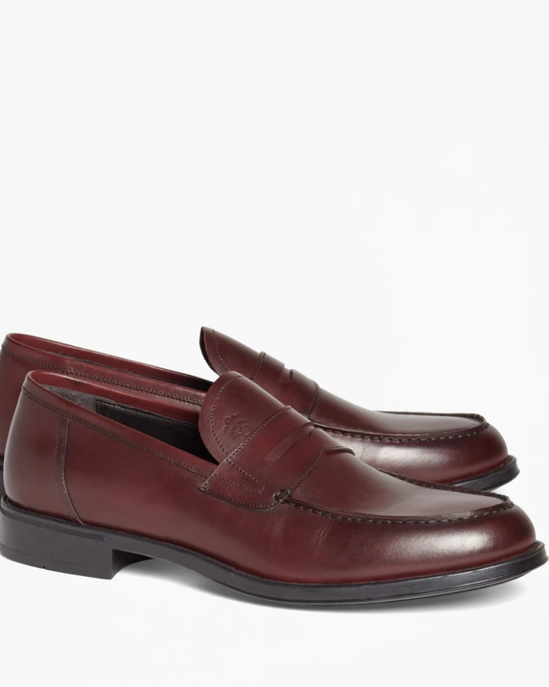Oxford & Evergreen Brooks Brothers 1818 Rubber-Sole Leather Penny Loafers, Burgundy