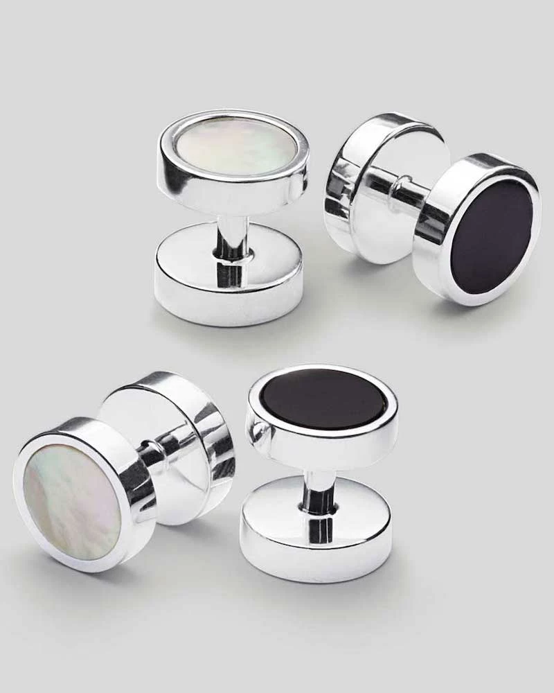 – product: all four studs in this set are double sided, so they can be worn showing either all black (onyx) or all white (mother-of-pearl) for exceptional versatility