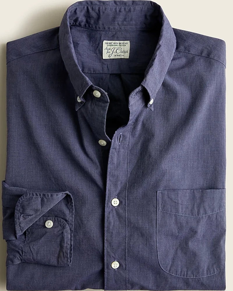 Oxford & Evergreen Clothing J. Crew Slim Stretch Secret Wash Organic Cotton Poplin Shirt, Montclair Navy