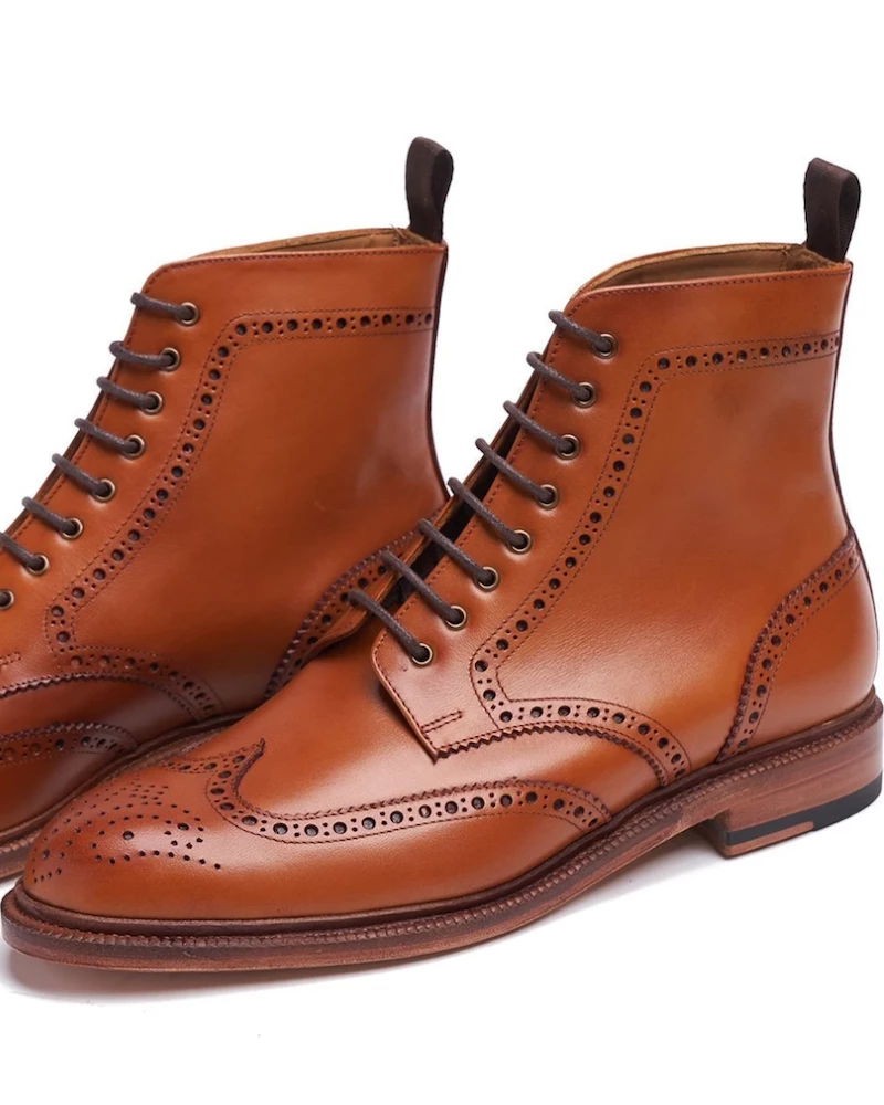 Oxford & Evergreen Meermin 101514 French Vintage Calf Wingtip Boot, Vintage Tan