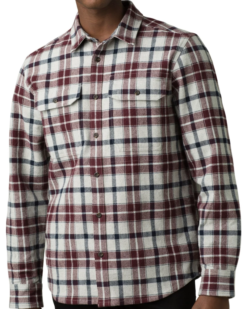 Oxford & Evergreen PrAna Wedgemont Organic Cotton Flannel Shirt, Light Grey Heather
